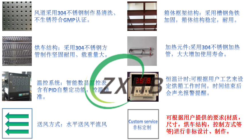 主要用于抗菌素玻璃瓶和50~100ml 輸液瓶的滅菌,也可作其它滅菌之用。潔凈型垂直層流風(fēng)式烘箱,將熱空氣從頂部高溫高效過(guò)濾器送入箱內(nèi),經(jīng)底部從兩側(cè)返回。主要用于原料生產(chǎn)的桶裝器具的滅菌。普通式滅菌烘箱,一般用于常規(guī)干燥滅菌之用,也可根據(jù)工作環(huán)境潔凈度的要求,作一些高潔凈度干燥滅菌。烘箱一次性將工作溫度、排濕溫度、排濕時(shí)間、恒溫時(shí)間及停機(jī)溫度設(shè)定完成即可,開機(jī)后控制將自動(dòng)按照所設(shè)定程序工作,直到工作完成自動(dòng)停機(jī)