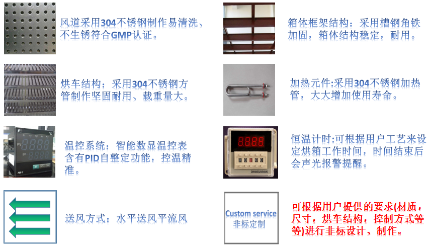 適用于制藥、化工、食品、農(nóng)副產(chǎn)品、水產(chǎn)品、輕工、重工等行業(yè)物料及產(chǎn)品的加熱固化、干燥脫水。如原料藥、生藥、中藥飲片、浸膏、粉劑、顆粒、沖劑、水丸、包裝瓶、顏料染料、脫水蔬菜、瓜果干、香腸、塑料樹(shù)脂、電器元件、烘漆等。